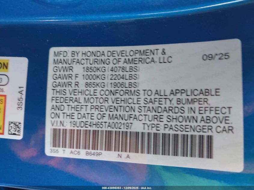 2026 ACURA INTEGRA 2026 року Бензин, 1.5, Передній привід, vin - 19UDE4H65TA002197 з США