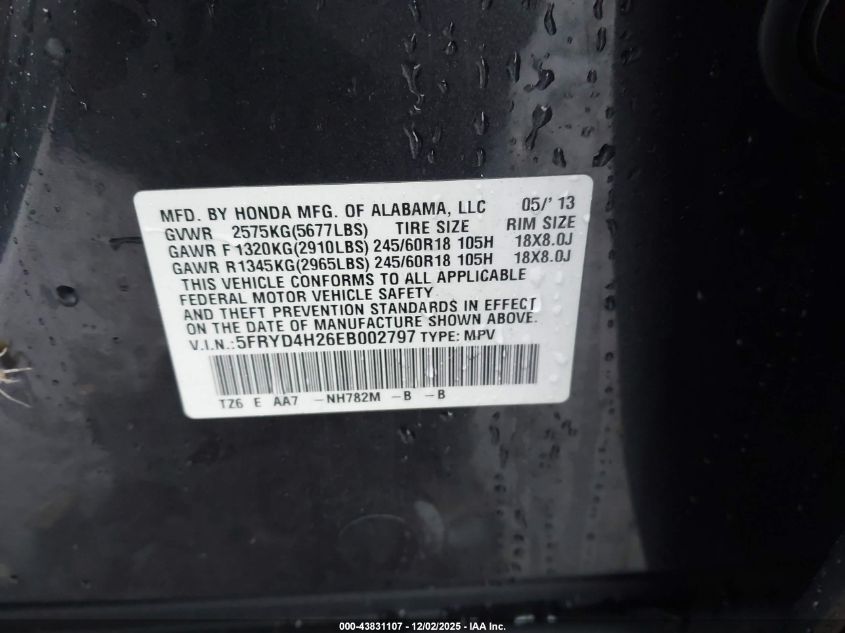 Колір СірийЦиліндри 6Привід Повний привідVIN 5FRYD4H26EB002797Стан Заводиться та їде (перевірено)Ушкодження Передня ліва AutoRIA