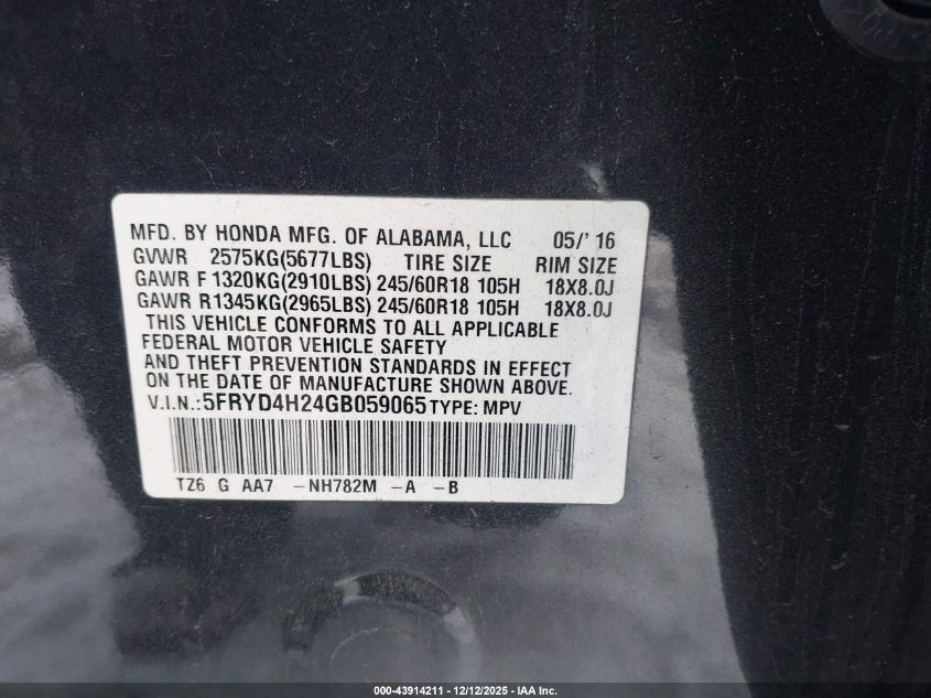 Колір СірийЦиліндри 6Привід Повний привідVIN 5FRYD4H24GB059065Стан Заводиться та їде (перевірено)Ушкодження Передня ліва AutoRIA