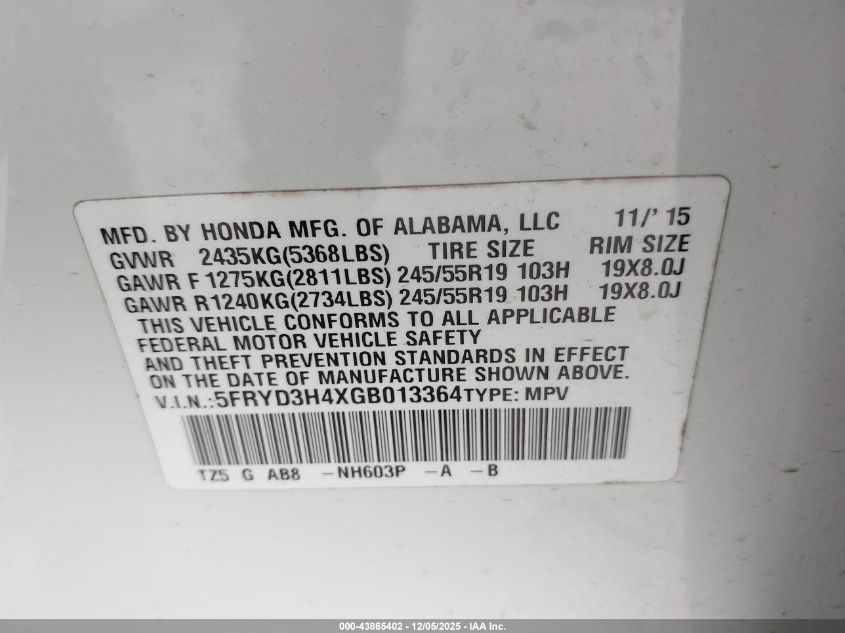 Колір БілийЦиліндри 6Привід Передній привідVIN 5FRYD3H4XGB013364Стан СтаціонарноУшкодження Передня або задня AutoRIA