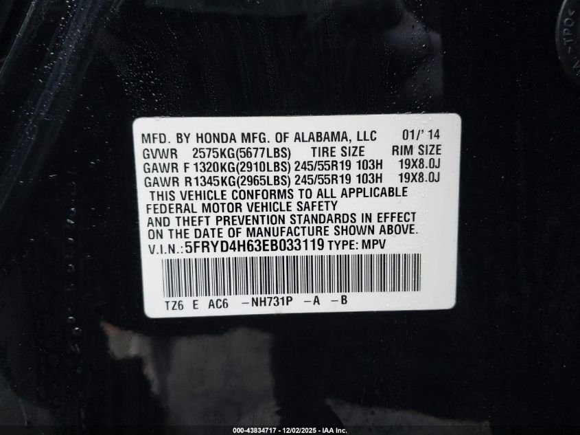 Колір ЧорнийЦиліндри 6Привід Повний привідVIN 5FRYD4H63EB033119Стан Заводиться та їде (перевірено)Ушкодження Права сторона AutoRIA