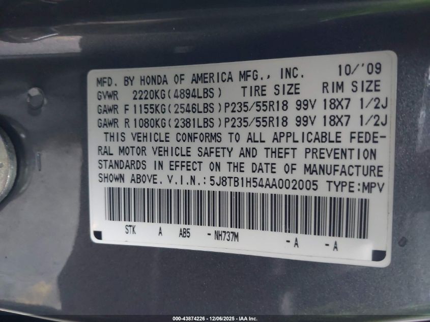 2010 ACURA RDX 2010 року Бензин, 2.3, Повний привід, vin - 5J8TB1H54AA002005 з США