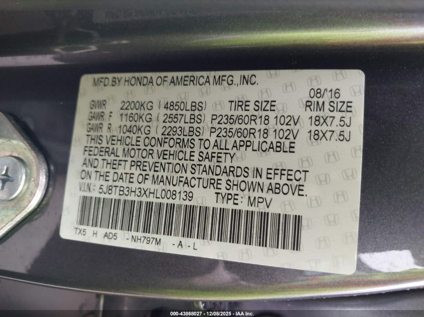 2017 ACURA RDX 2017 року Бензин, 3.5, Передній привід, vin - 5J8TB3H3XHL008139 з США