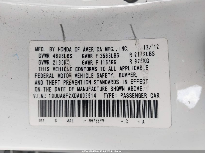 Колір БілийЦиліндри 6Привід Передній привідVIN 19UUA8F2XDA006914Стан СтаціонарноУшкодження Передня ліва AutoRIA