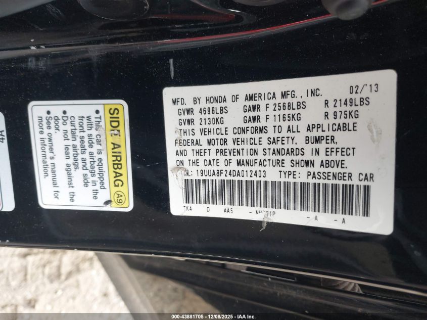 Колір ЧорнийЦиліндри 6Привід Передній привідVIN 19UUA8F24DA012403Стан Заводиться та їде (перевірено)Ушкодження Передня або задня AutoRIA