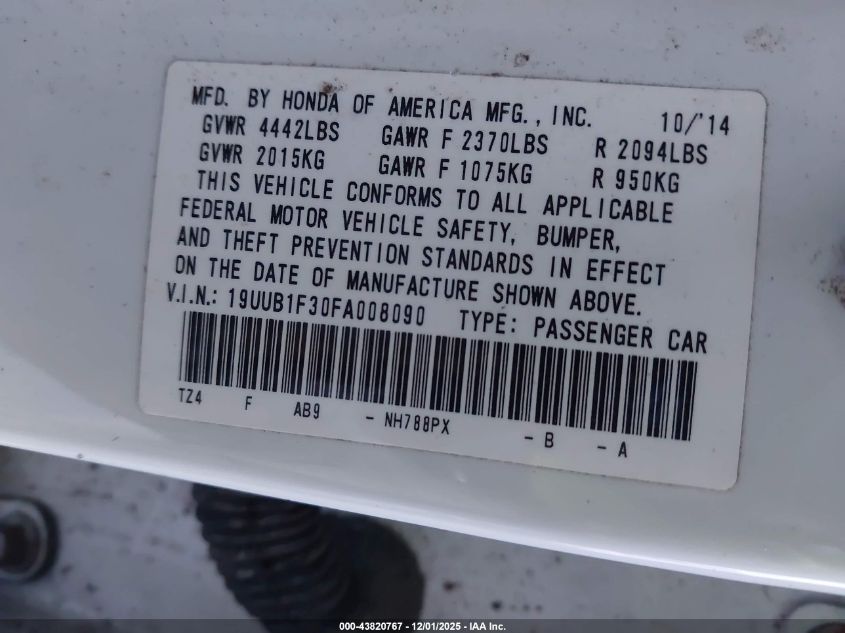 Колір БілийЦиліндри 4Привід Передній привідVIN 19UUB1F30FA008090Стан Заводиться та їде (перевірено)Ушкодження Передня ліва AutoRIA
