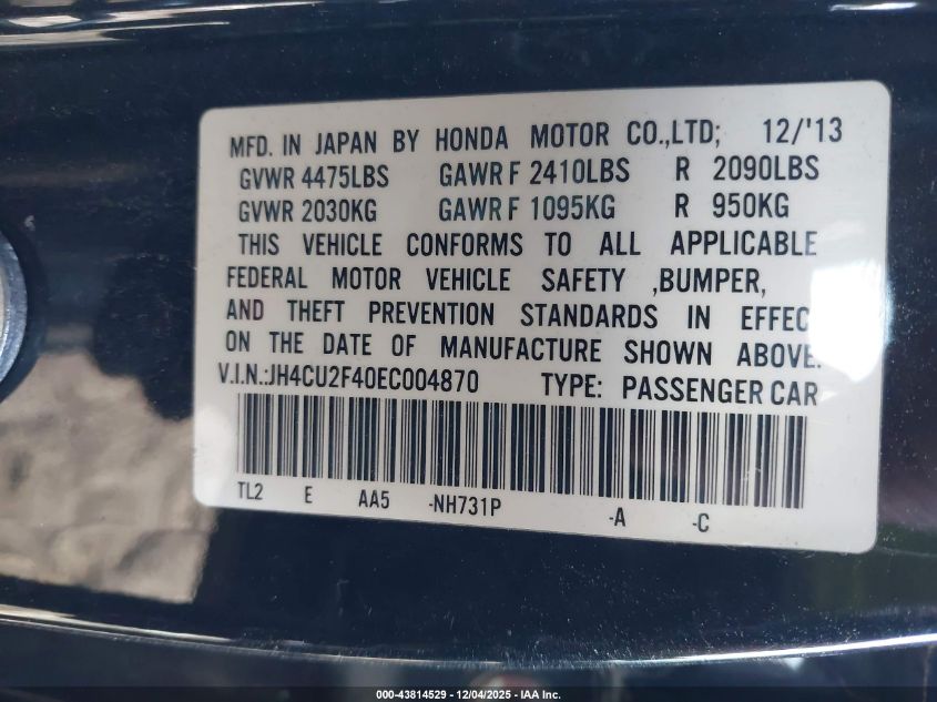 2014 ACURA TSX 2014 року Бензин, 2.4, Передній привід, vin - JH4CU2F40EC004870 з США