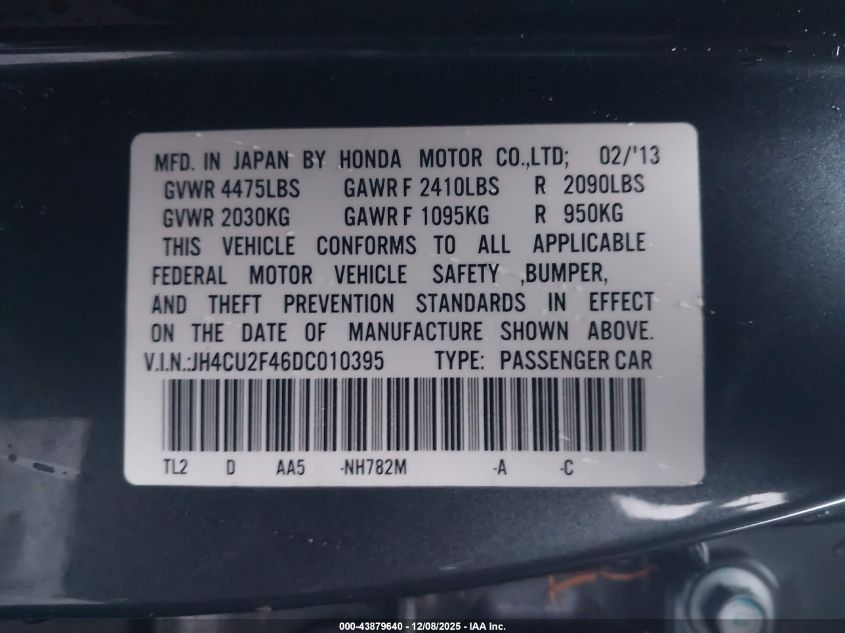 2013 ACURA TSX 2013 року Бензин, 2.4, Передній привід, vin - JH4CU2F46DC010395 з США