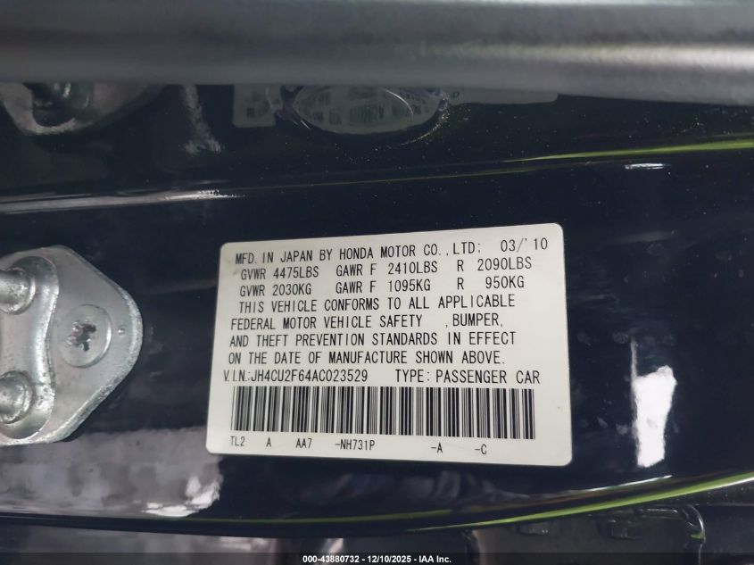 2010 ACURA TSX 2010 року Бензин, 2.4, Передній привід, vin - JH4CU2F64AC023529 з США