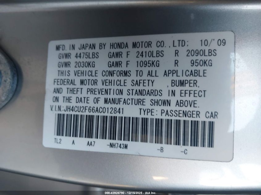 2010 ACURA TSX 2010 року Бензин, 2.4, Передній привід, vin - JH4CU2F66AC012841 з США