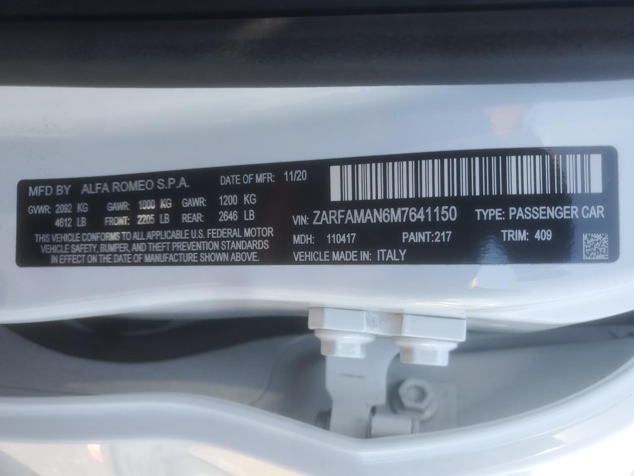 2021 ALFA ROMEO GIULIA 2021 року Бензин, 2.0, Задній привід, vin - ZARFAMAN6M7641150 з США