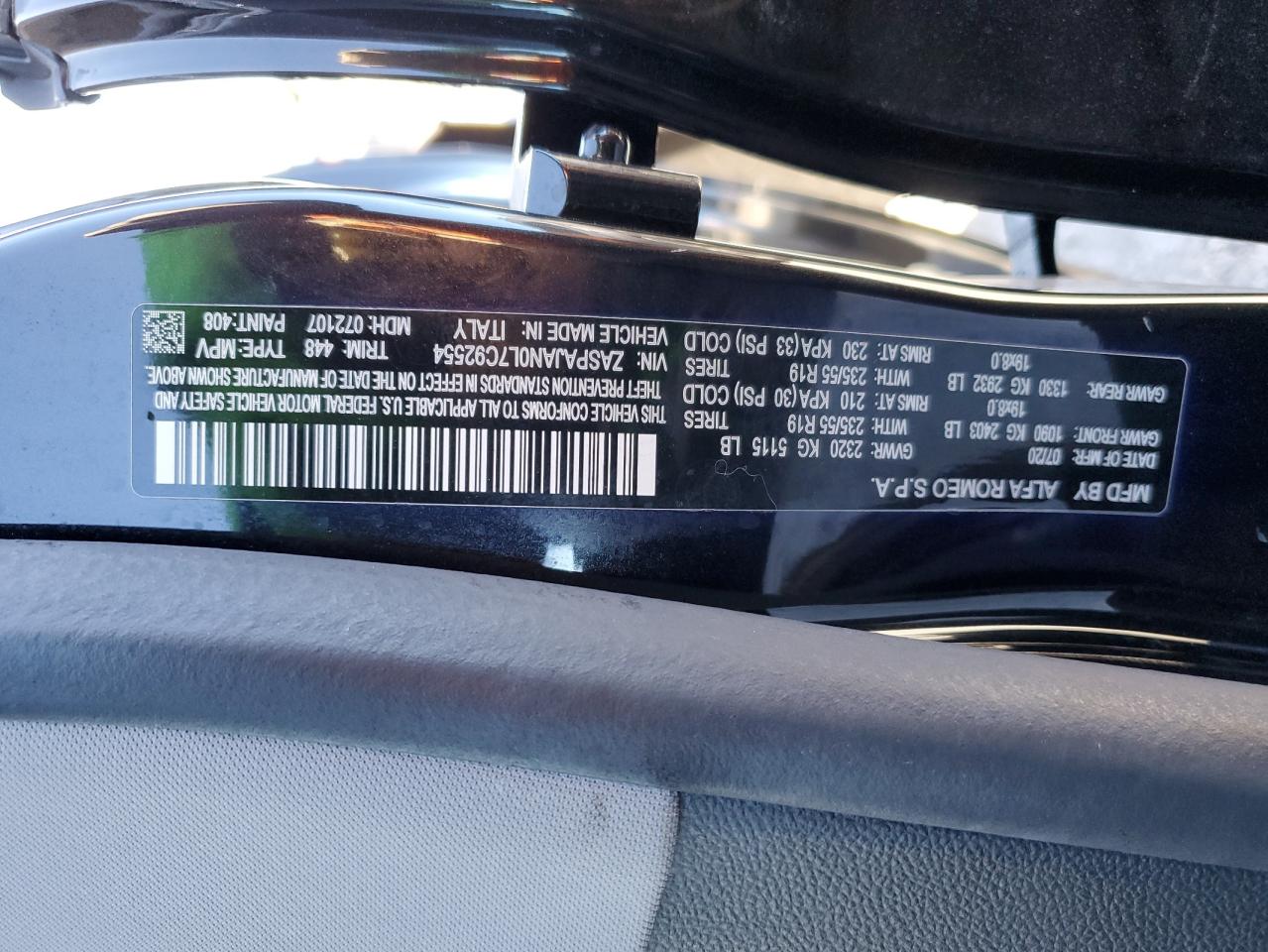 2020 ALFA ROMEO STELVIO 2020 року Бензин, 2.0, Задній привід, vin - ZASPAJAN0L7C92554 з США