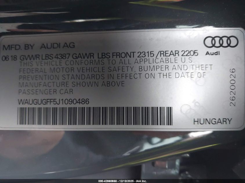2018 AUDI A3 2018 року Бензин, 2.0, Передній привід, vin - WAUGUGFF5J1090486 з США