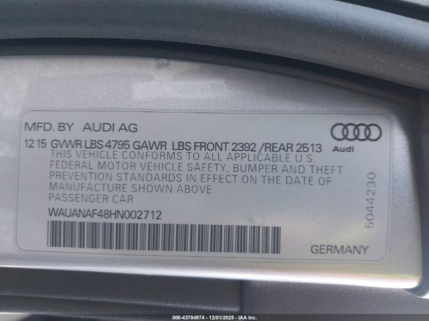 2017 AUDI A4 PREMIUM PLUS
