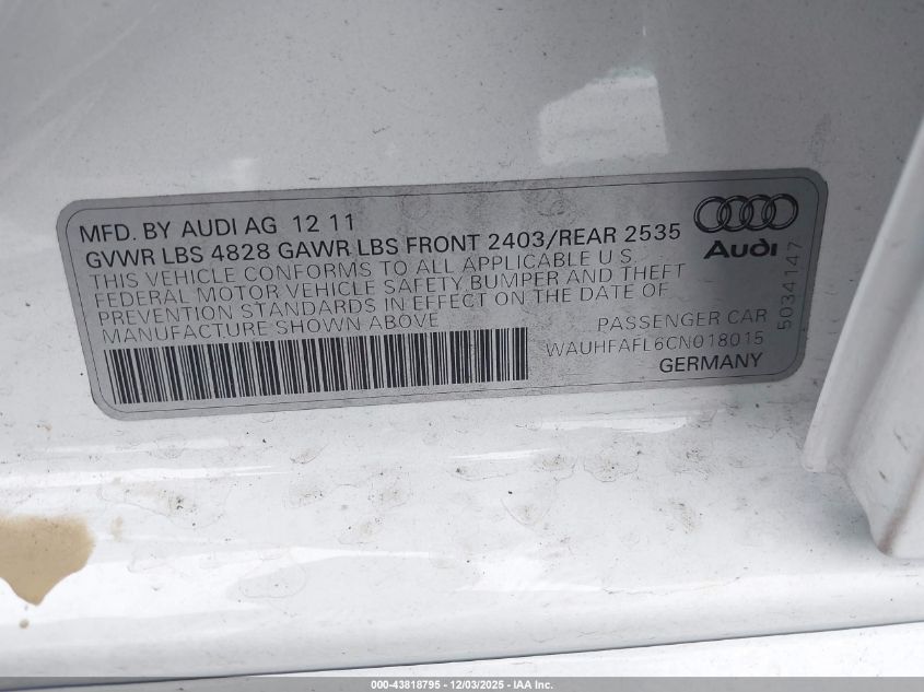 2012 AUDI A4 2012 року Бензин, 2.0, Повний привід, vin - WAUHFAFL6CN018015 з США