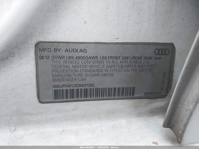 Колір БілийЦиліндри 4Привід Повний привідVIN WAUFFAFLXDN021282Стан СтаціонарноУшкодження Мотор AutoRIA