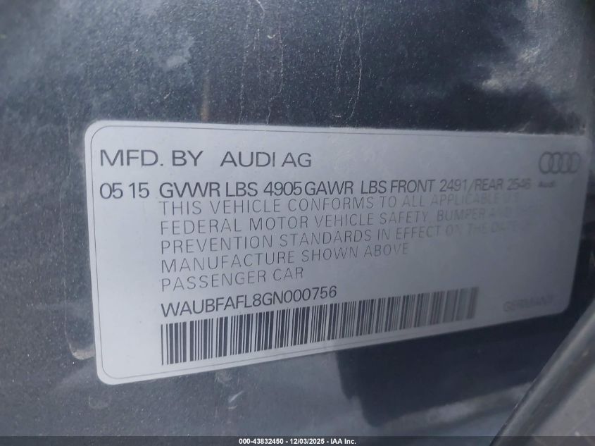 2016 AUDI A4 2016 року Бензин, 2.0, Повний привід, vin - WAUBFAFL8GN000756 з США
