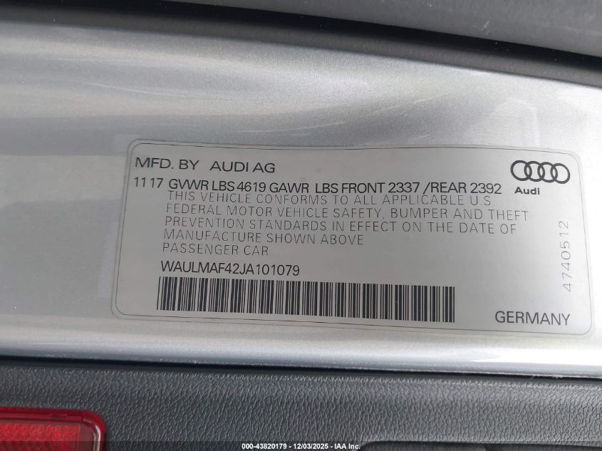 2018 AUDI A4 2018 року Бензин, 2.0, Передній привід, vin - WAULMAF42JA101079 з США