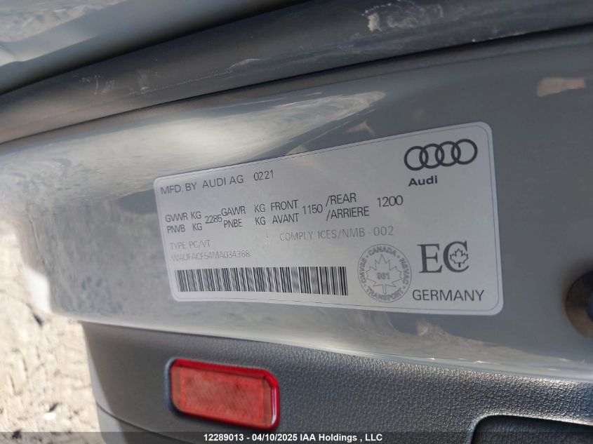 2021 AUDI A5 2021 року Бензин, , Повний привід, vin - WAUFACF54MA034368 з США