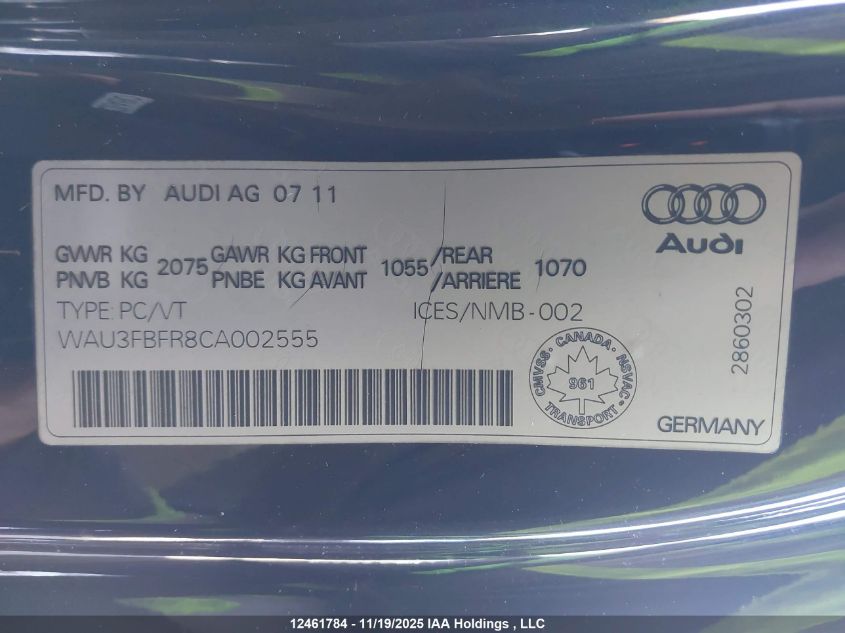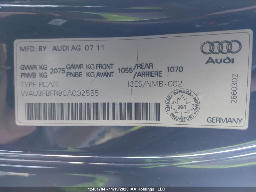 2012 AUDI A5 2012 року Бензин, , Повний привід, vin - WAU3FBFR8CA002555 з США
