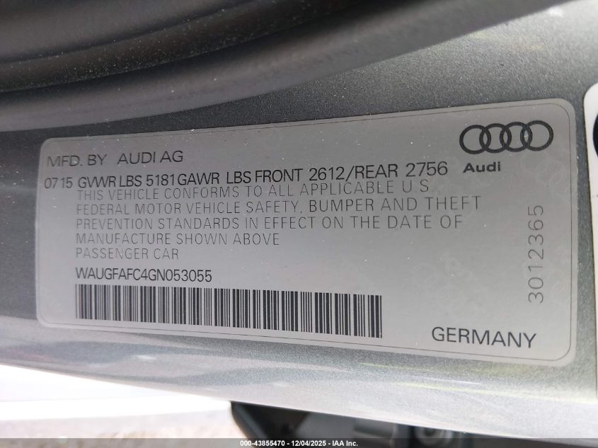 2016 AUDI A6 2016 року Бензин, 2.0, Повний привід, vin - WAUGFAFC4GN053055 з США