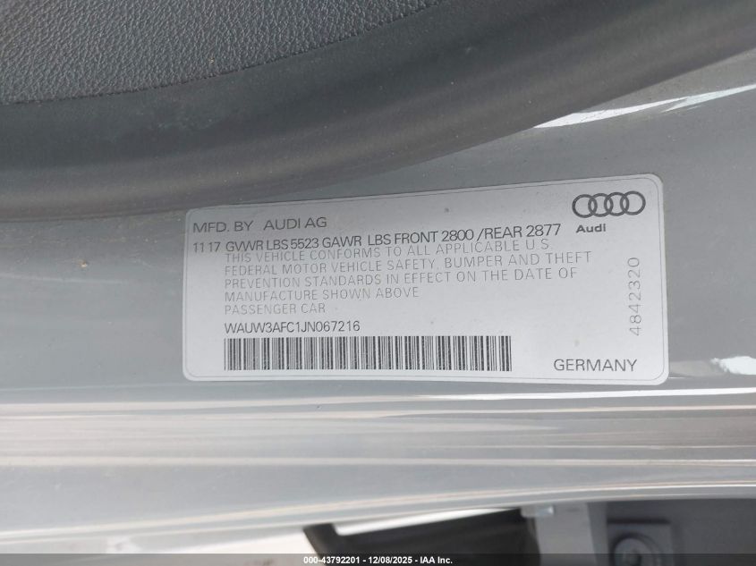 2018 AUDI A7 2018 року Бензин, 3.0, Повний привід, vin - WAUW3AFC1JN067216 з США