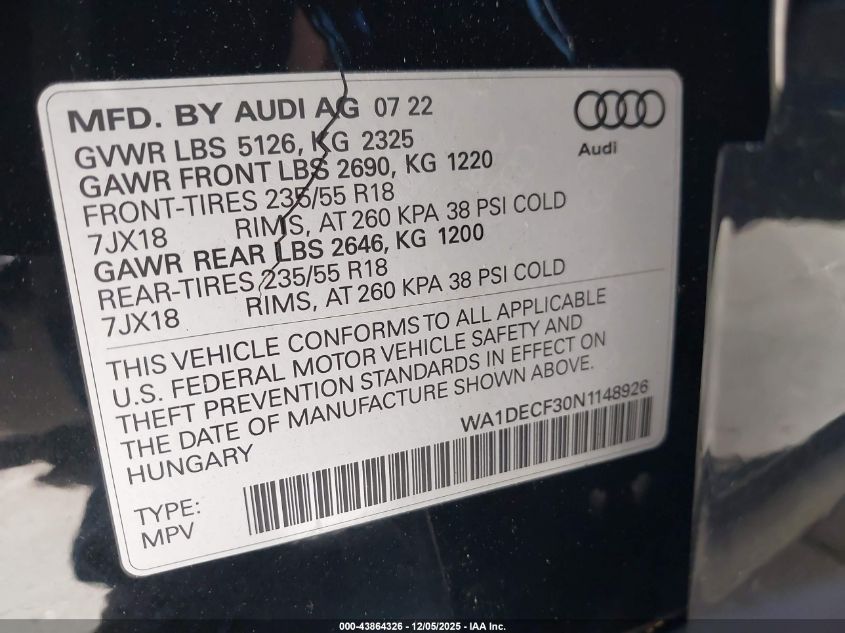 2022 AUDI Q3 2022 року Бензин, 2.0, Повний привід, vin - WA1DECF30N1148926 з США