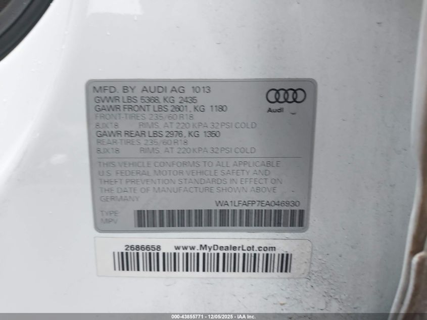 2014 AUDI Q5 2014 року Бензин, 2.0, Повний привід, vin - WA1LFAFP7EA046930 з США