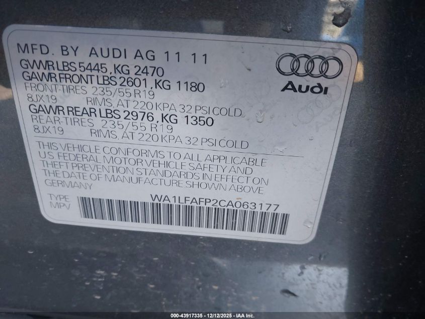 2012 AUDI Q5 2012 року Бензин, 2.0, Повний привід, vin - WA1LFAFP2CA063177 з США