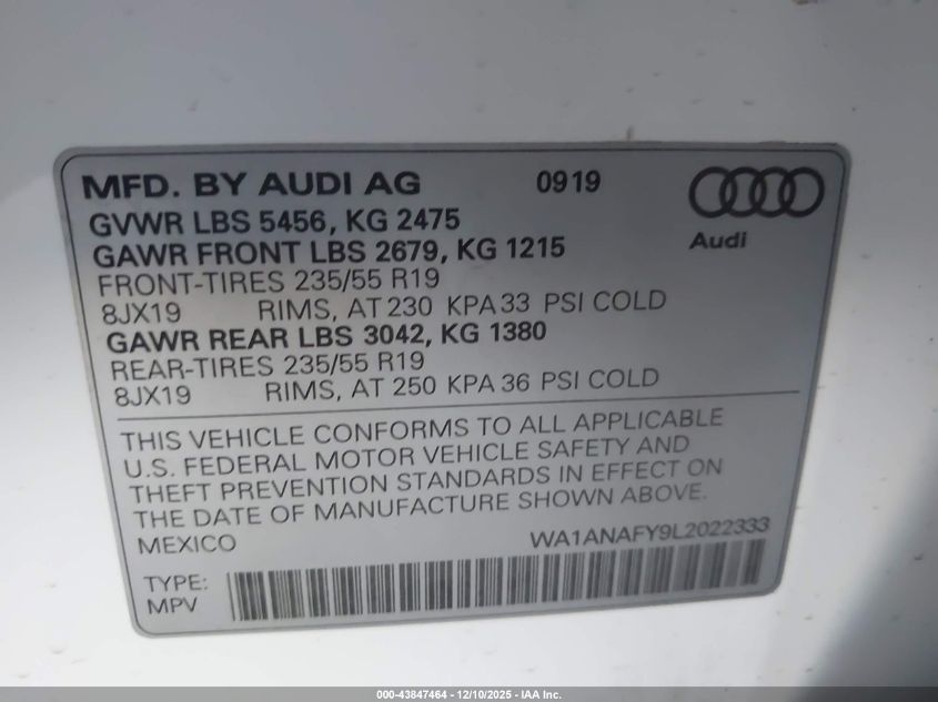 2020 AUDI Q5 2020 року Бензин, 2.0, Повний привід, vin - WA1ANAFY9L2022333 з США