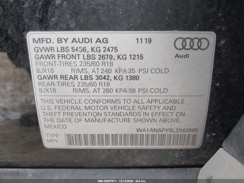 2020 AUDI Q5 2020 року Бензин, 2.0, Повний привід, vin - WA1ANAFY0L2043569 з США