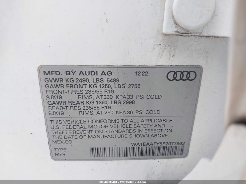 2023 AUDI Q5 2023 року Бензин, 2.0, Повний привід, vin - WA1EAAFY5P2077963 з США