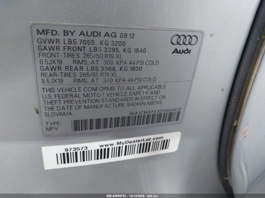 2013 AUDI Q7 2013 року Дизель, 3.0, Повний привід, vin - WA1CMAFE3DD004823 з США