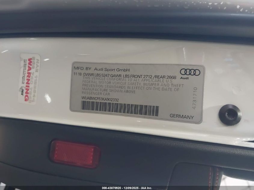 2019 AUDI RS5 2019 року Бензин, 2.9, Повний привід, vin - WUABWCF53KA902332 з США