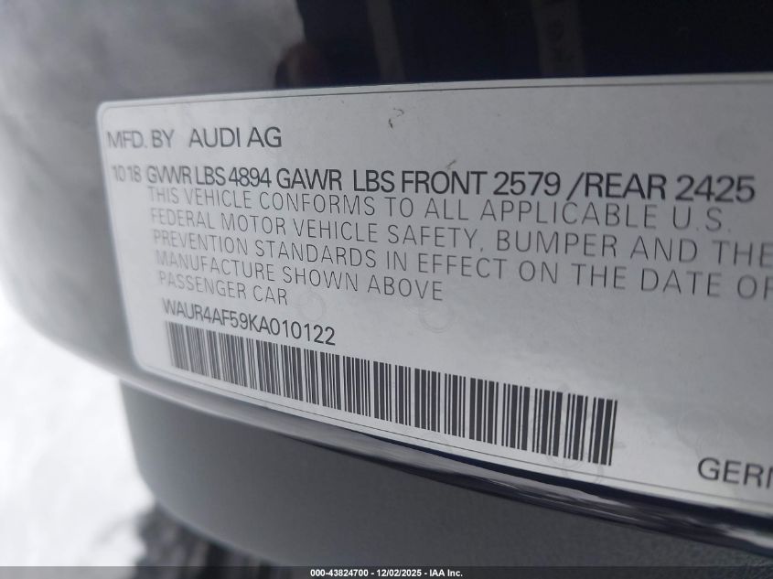 Колір ЧорнийЦиліндри 6Привід Повний привідVIN WAUR4AF59KA010122Стан Заводиться та їде (перевірено)Ушкодження Передня або задня AutoRIA