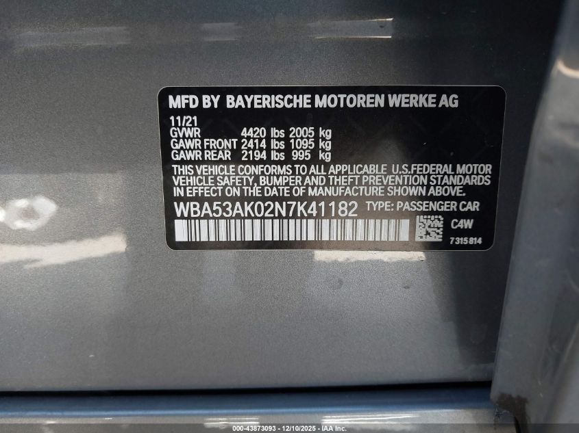 2022 BMW 2 SERIES GRAN COUPE 2022 року Бензин, 2.0, Передній привід, vin - WBA53AK02N7K41182 з США