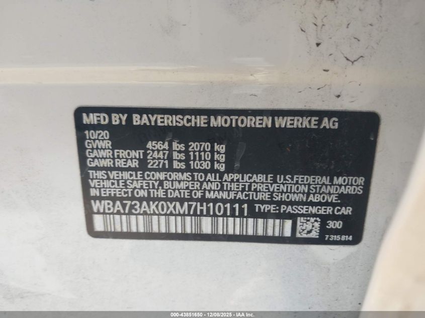 2021 BMW 2 SERIES GRAN COUPE 2021 року Бензин, 2.0, Повний привід, vin - WBA73AK0XM7H10111 з США