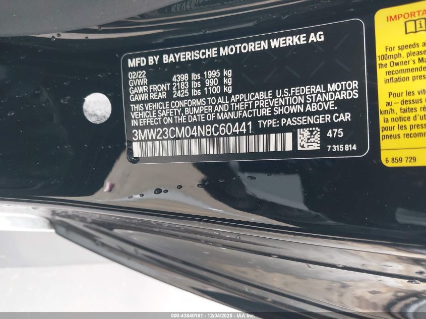 2022 BMW 2 SERIES 2022 року Бензин, 2.0, Задній привід, vin - 3MW23CM04N8C60441 з США