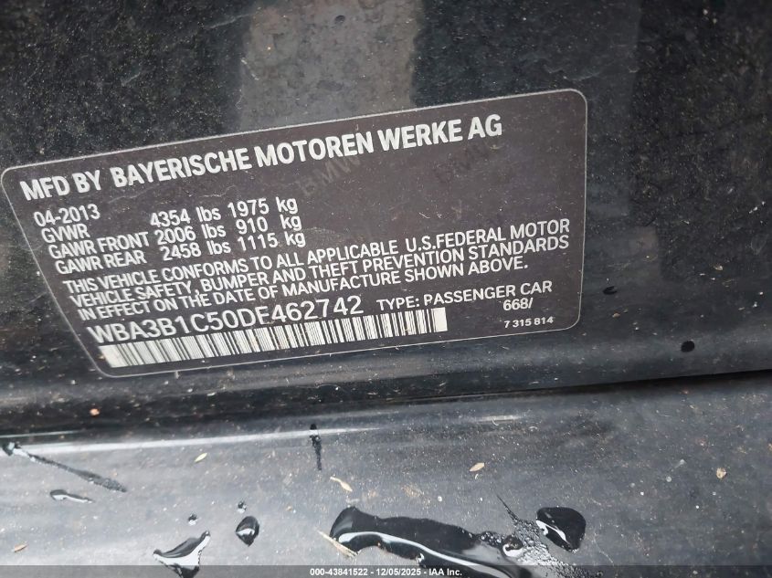 2013 BMW 3 SERIES 2013 року Бензин, 2.0, Задній привід, vin - WBA3B1C50DF462742 з США