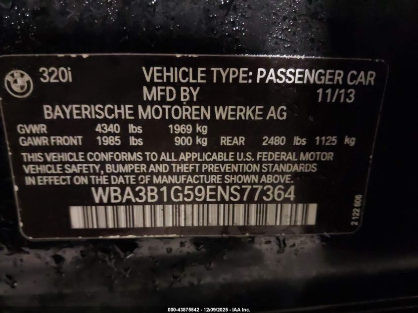 2014 BMW 3 SERIES 2014 року Бензин, 2.0, Задній привід, vin - WBA3B1G59ENS77364 з США