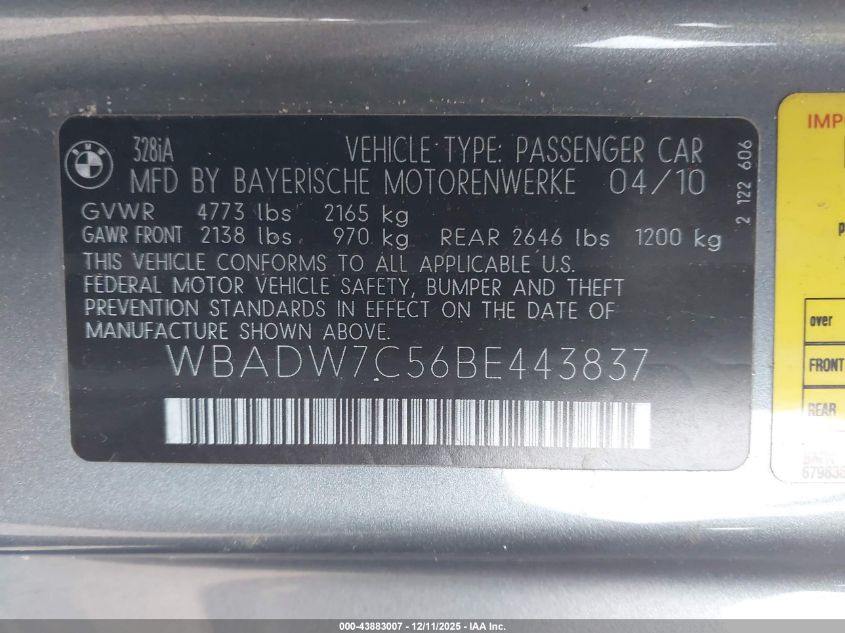 2011 BMW 3 SERIES 2011 року Бензин, 3.0, Задній привід, vin - WBADW7C56BE443837 з США