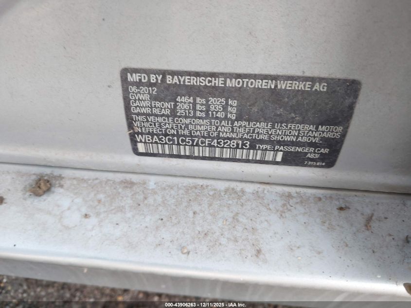 2012 BMW 3 SERIES 2012 року Бензин, 2.0, Задній привід, vin - WBA3C1C57CF432813 з США