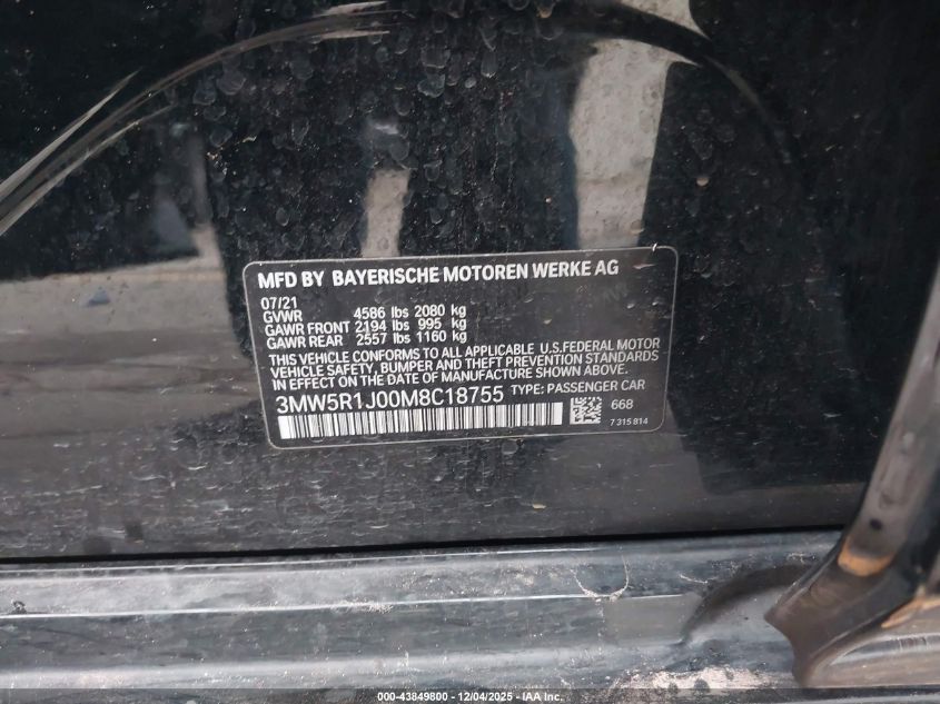 2021 BMW 3 SERIES 2021 року Бензин, 2.0, Задній привід, vin - 3MW5R1J00M8C18755 з США