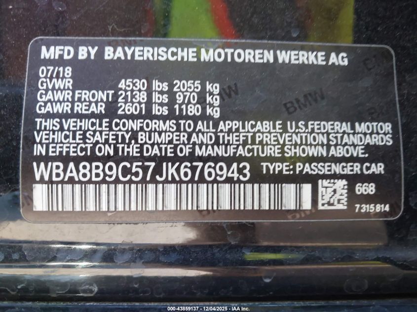 2018 BMW 3 SERIES 2018 року Бензин, 2.0, Задній привід, vin - WBA8B9C57JK676943 з США