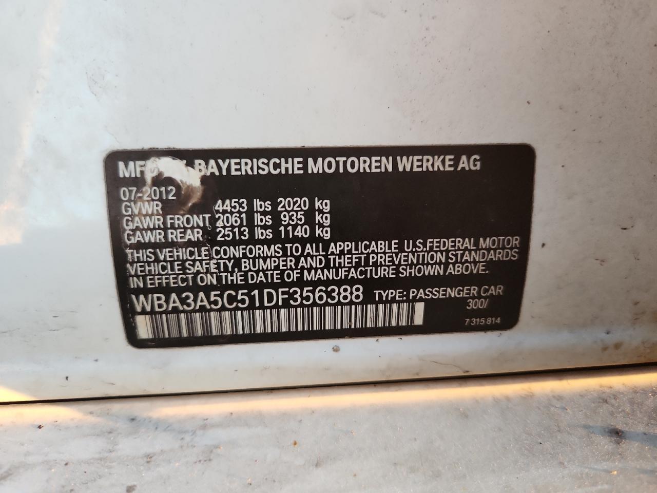 2013 BMW 3 SERIES 2013 року Бензин, 2.0, Задній привід, vin - WBA3A5C51DF356388 з США