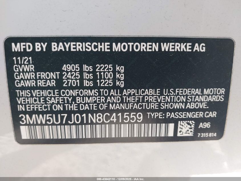 2022 BMW 3 SERIES 2022 року Бензин, 3.0, Задній привід, vin - 3MW5U7J01N8C41559 з США