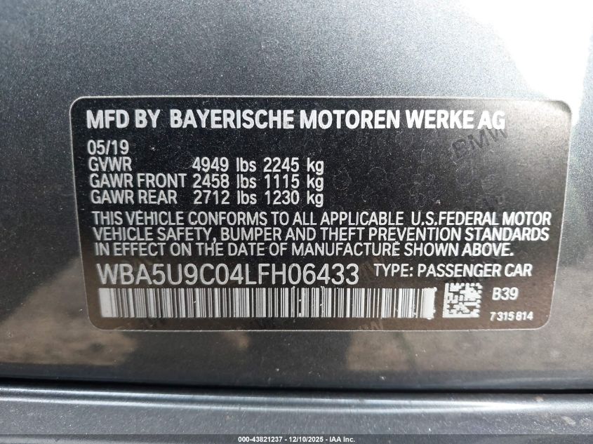 2020 BMW 3 SERIES 2020 року Бензин, 3.0, Повний привід, vin - WBA5U9C04LFH06433 з США