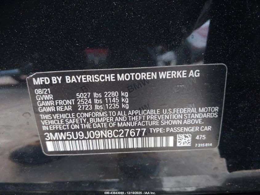 2022 BMW 3 SERIES 2022 року Бензин, 3.0, Повний привід, vin - 3MW5U9J09N8C27677 з США
