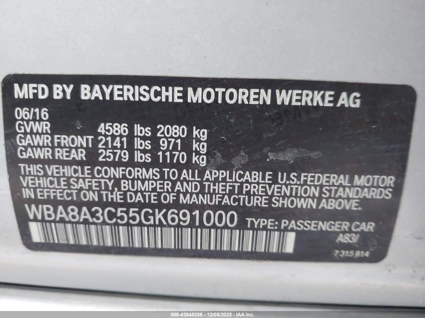 2016 BMW 3 SERIES 2016 року Бензин, 2.0, Повний привід, vin - WBA8A3C55GK691000 з США