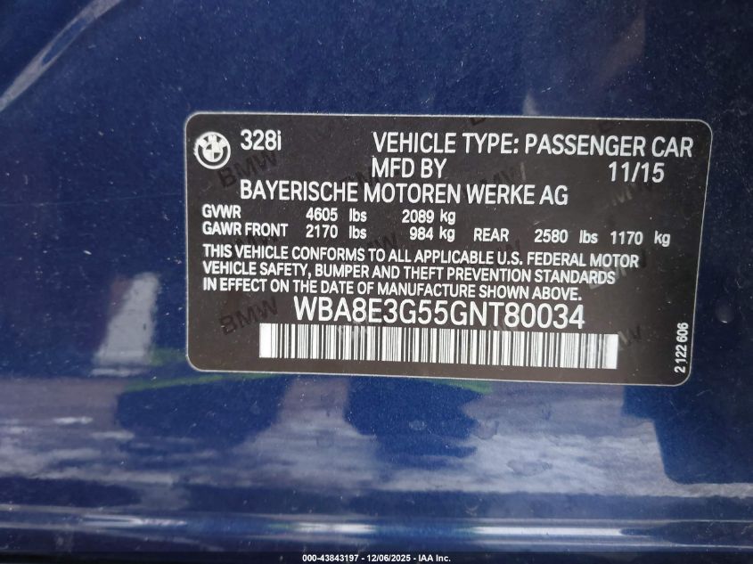 2016 BMW 3 SERIES 2016 року Бензин, 2.0, Повний привід, vin - WBA8E3G55GNT80034 з США